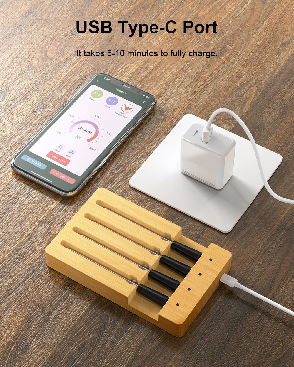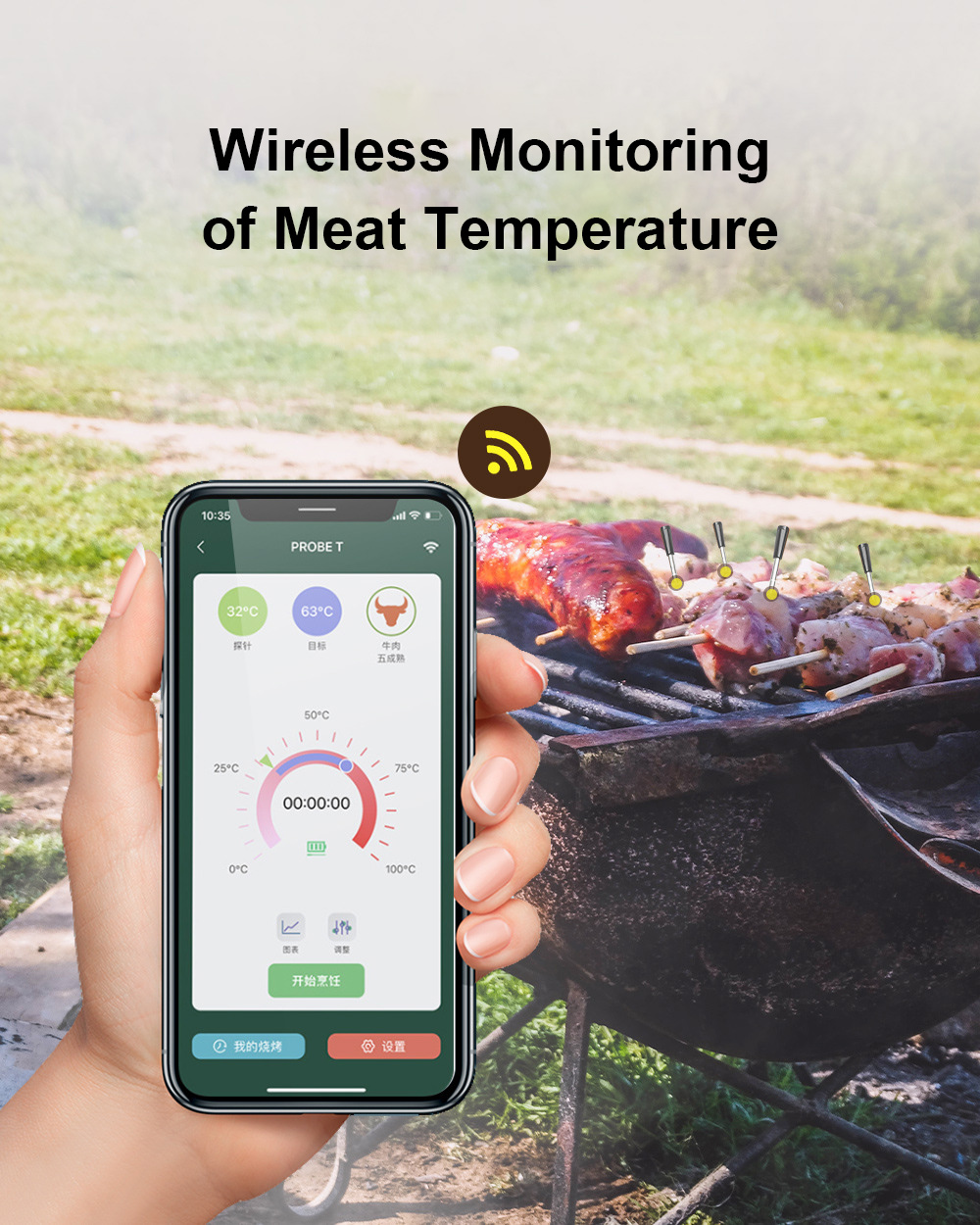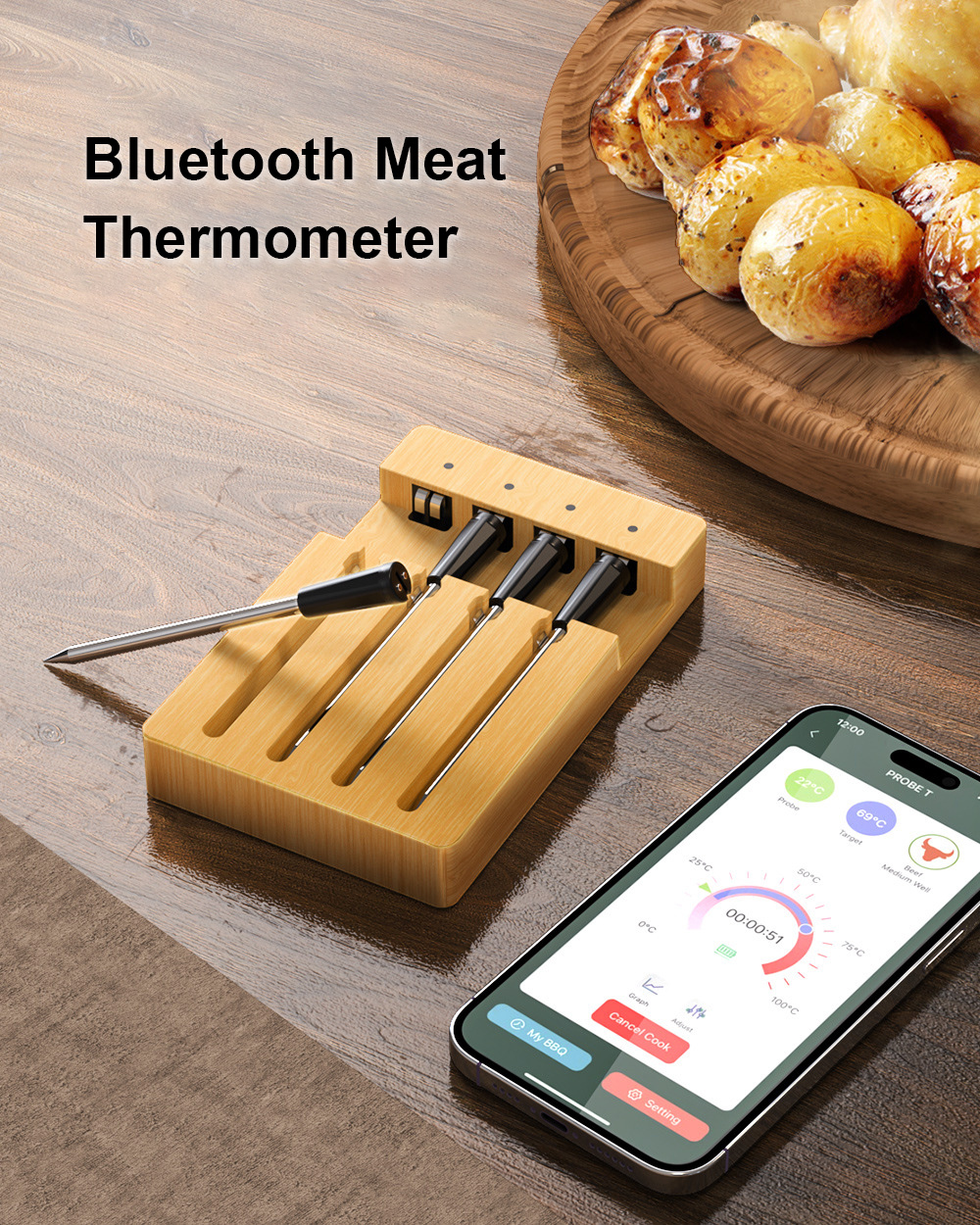 Four-Probe Wireless Meat Thermometer Waterproof Food Thermometer Probe for Oven BBQ Steak Turkey