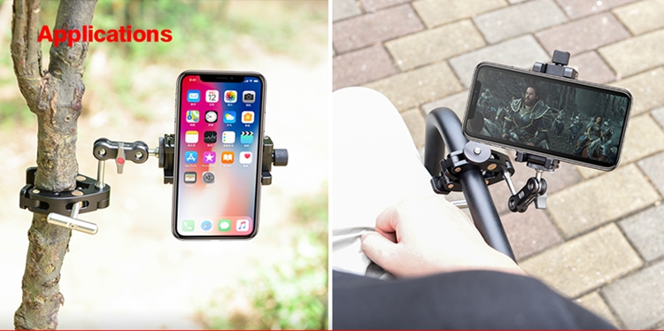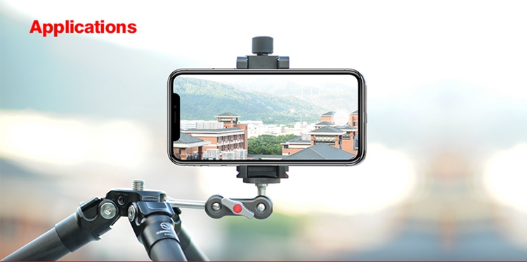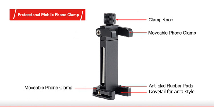Note: Mobile phones, tripods, C clamp, ball heads, and other items pictured are not included, for demonstration purposes only.