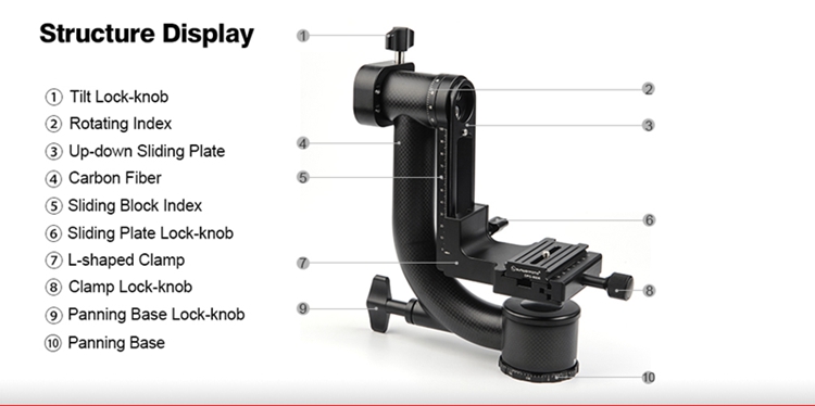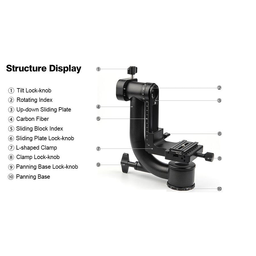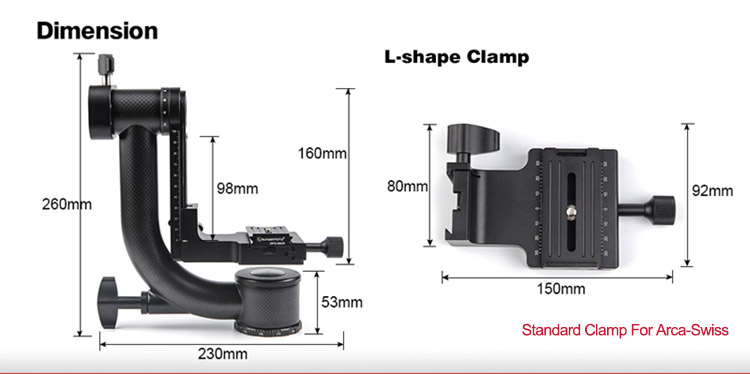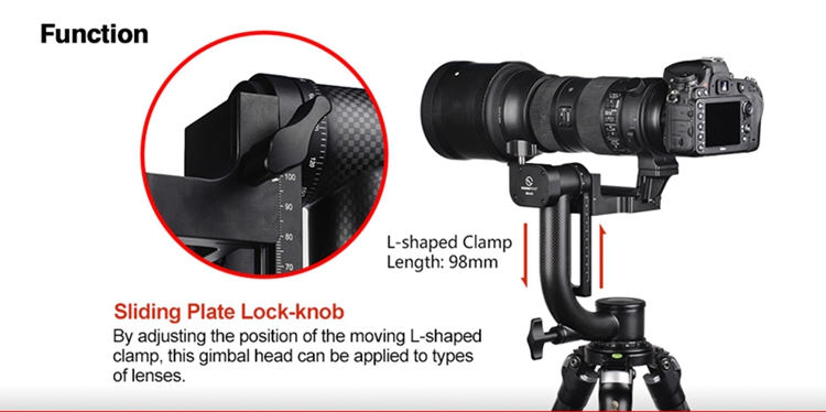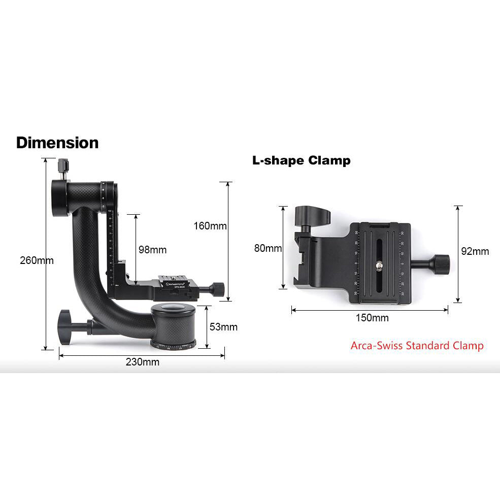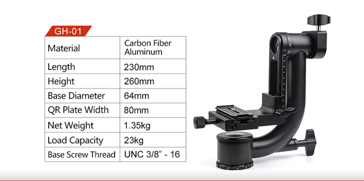 GH-01 Gimbal Head 360 Degree Rotation Load 23KG with Standard Clamp For Arca-Swiss Panorama Shooting