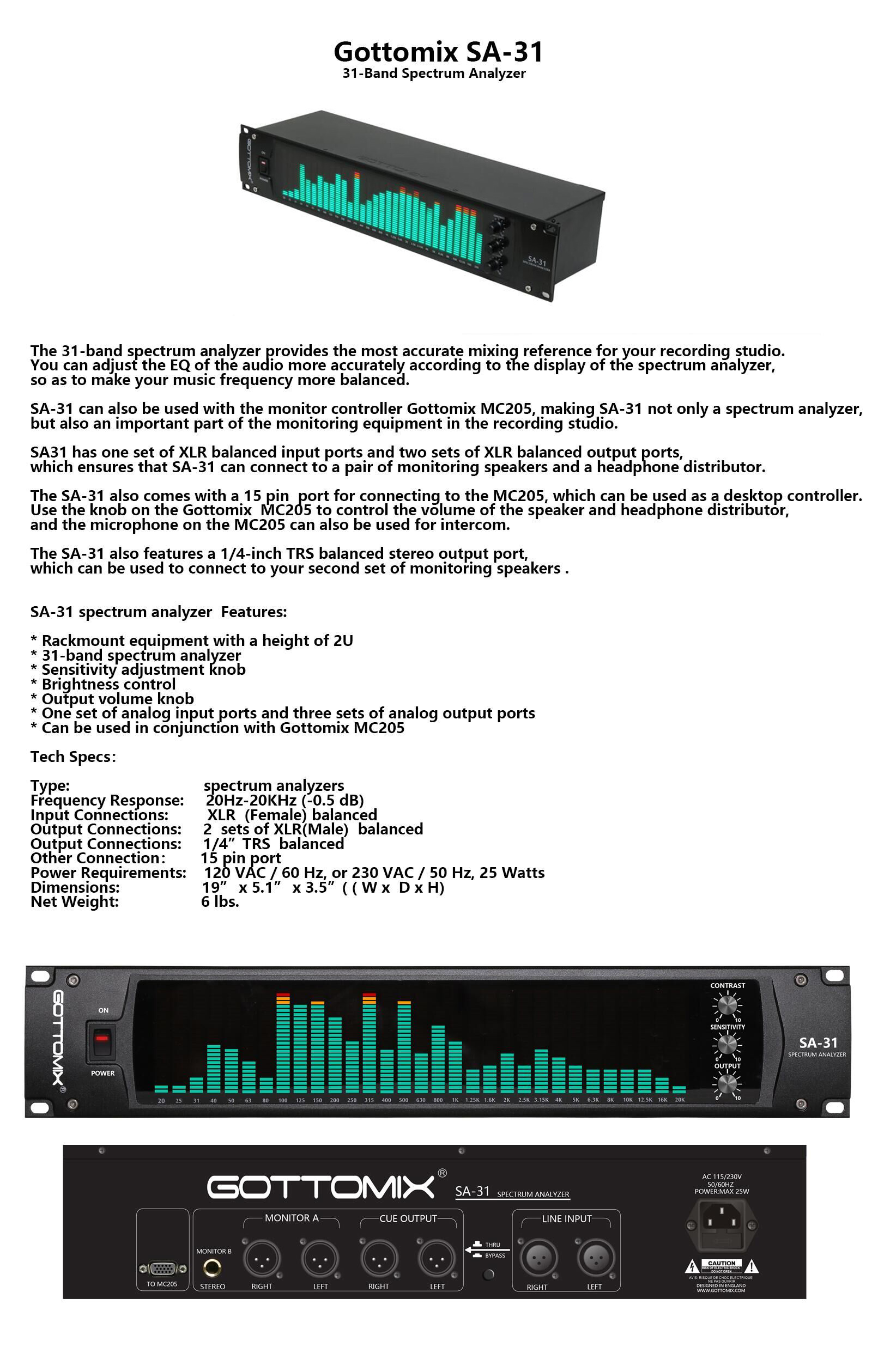 Gottomix SA-31 31-Band Music Spectrum Analyzer + Desktop Rack + Music Level Meter + MC205 Controller
