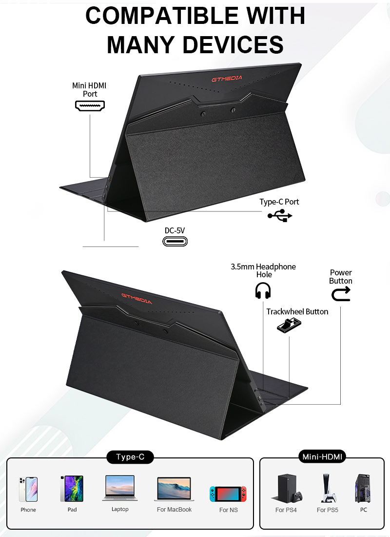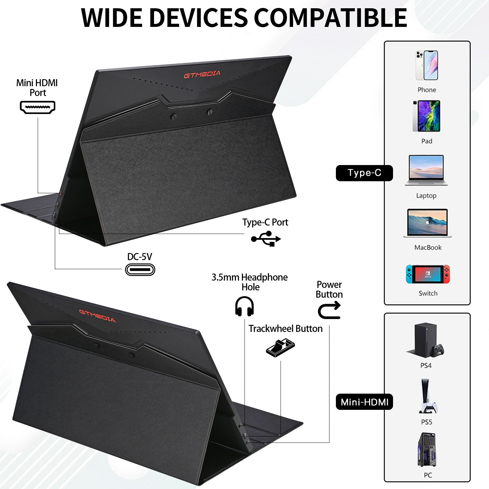 GTMEDIA Game Mate 173F 1080P 17.3" Portable Monitor Portable Display for Laptop Mac Phone PS4 PS5 NS