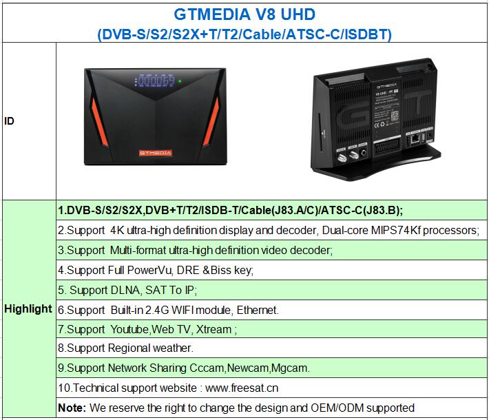GTMEDIA V8 UHD Set-Top Box Digital Signal Receiver Support DVB-S/S2/S2X+T/T2/Cable/ATSC-C/ISDBT