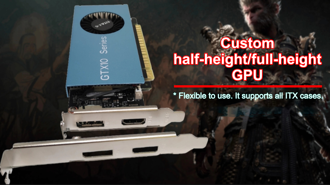 - Custom half-height/full-height GPU: It is flexible to support all ITX cases