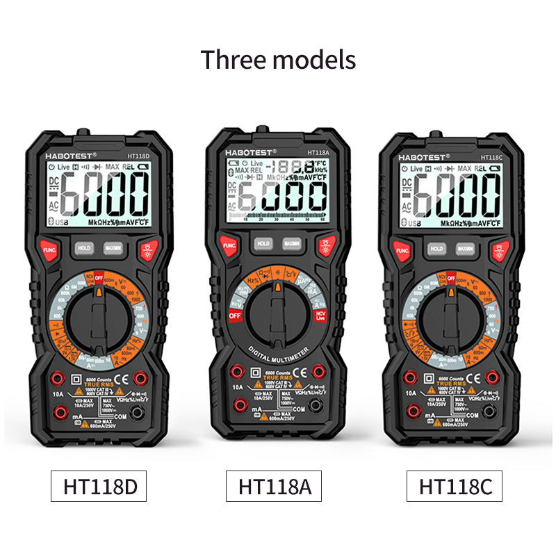 HABOTEST HT118A Auto Range Digital Multimeter Tester NCV TRMS 6000 Count Temperature Test Function