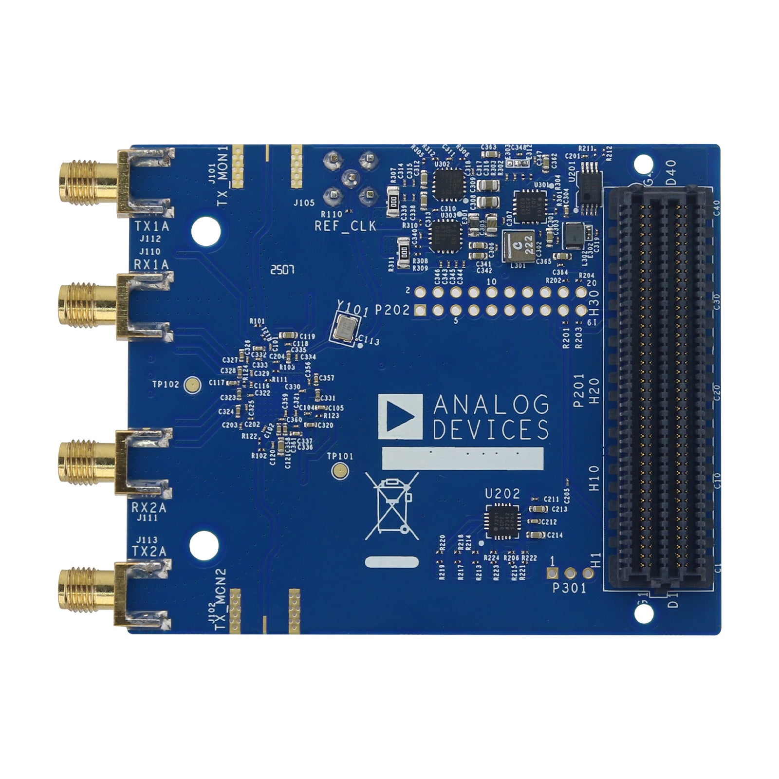 The AD-FMCOMMS3-EBZ is a high-speed analog module designed to showcase the AD9361, a high performance, highly integrated RF transceiver intended for use in RF applications, such as 3G and 4G base station and test equipment applications, and software defined radios. Its programmability and wideband capability make it ideal for a broad range of transceiver applications. The device combines an RF front end with a flexible mixed-signal baseband section and integrated frequency synthesizers, simplifying design-in by providing a configurable digital interface to a processor or FPGA. The AD9361 chip operates in the 70 MHz to 6 GHz range, covering most licensed and unlicensed bands. The chip supports channel bandwidths from less than 200 kHz to 56 MHz by changing sample rate, digital filters, and decimation, which are all programmable within the AD9361 itself.
