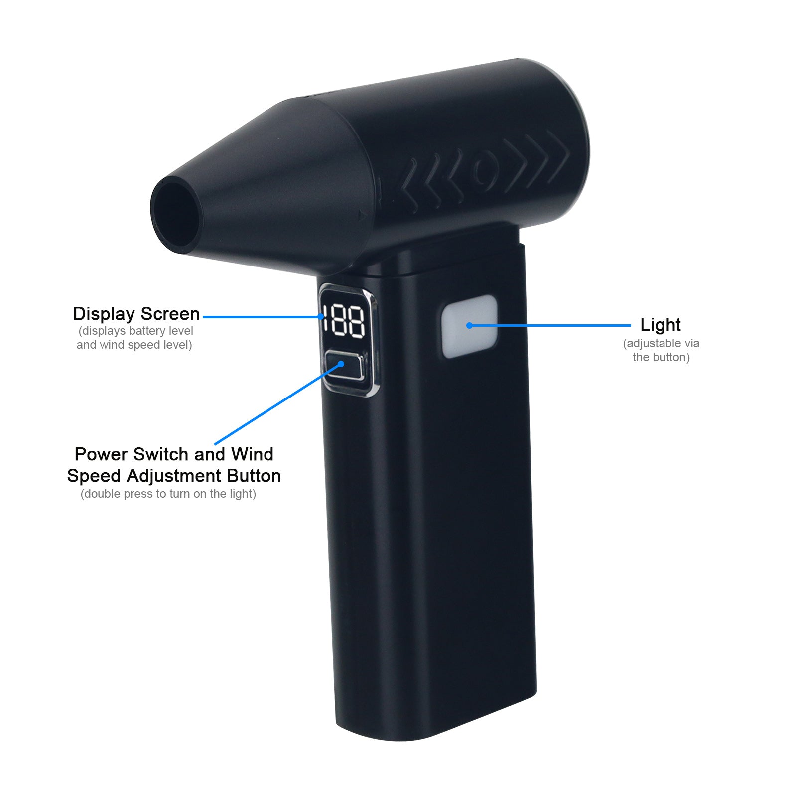 * High-Speed Fan: The powerful speed ranges from 80,000 to 130,000 RPM. With stable high-speed operation, it generates a powerful wind force of 200g.