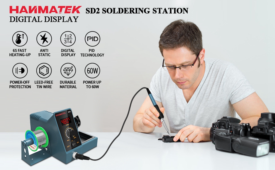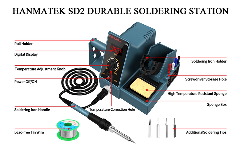 HANMATEK SD1 Soldering Station 60W 200℃~480℃ Temperature Adjustable Digital Display Soldering Station Set