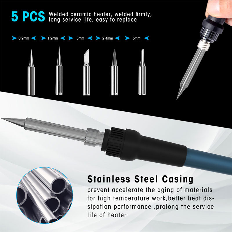 - ESD & FCC safe certified: As a professional manufacturer of hardware instruments, we know the importance of safety. Fuse to prevent leakage, high temperature resistant silicone wire, power-off protection switch, lead-free and non-toxic soldering iron nozzle Each safety design and protection parts are adopted to give you an extra layer of safety protection. The soldering station is ESD & FCC certified, safe and reliable.
