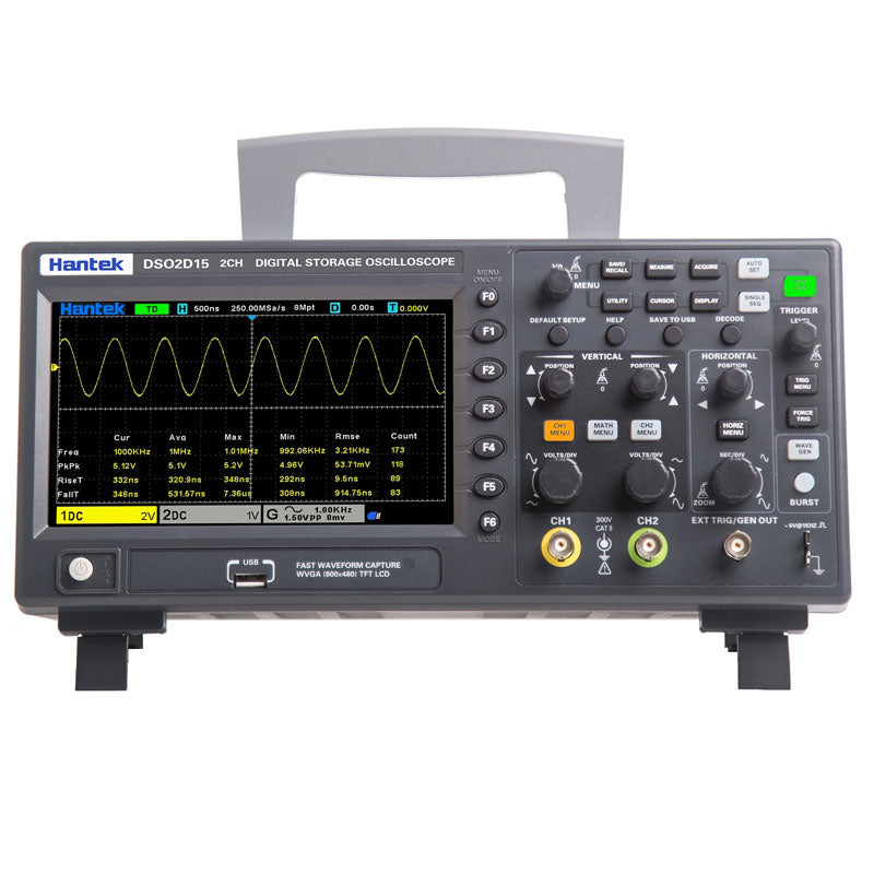 6) Built-in 1CH 25MHz waveform generator, support arbitrary waveform burst output, support modulation waveform output (only for DSO2D10, DSO2D15)