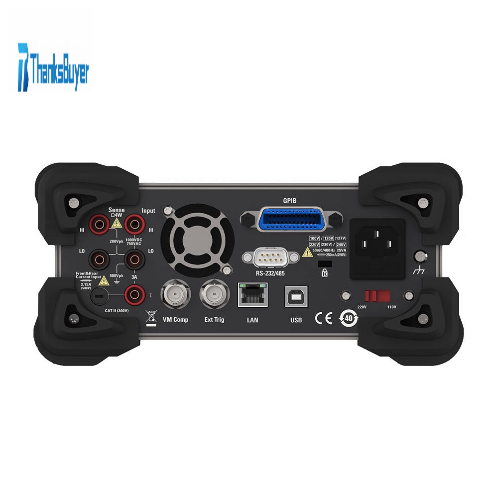- 5 1/2 reading multimeter with 1 μV high resolution; 30 kS/s high-speed sampling frequency, which makes it easy to capture transient signals; Two sets of input interfaces front and rear, which provides convenience to arrange wires; Standard with bar chart, histogram, trend chart and data statistics functions; Double-display measurement function, displaying voltage and frequency synchronously; A variety of measurement functions: DC voltage, AC voltage, DC current, AC current, 2-line resistance, 4-line resistance, capacitance, diode, connectivity, frequency, period, temperature; 4.3-inch color LCD screen; Simple operations, abundant measurement interfaces.