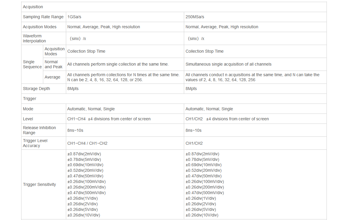 oscilloscope: 1GSa/s sampling rate and 8M memory depth. Edge, slope,