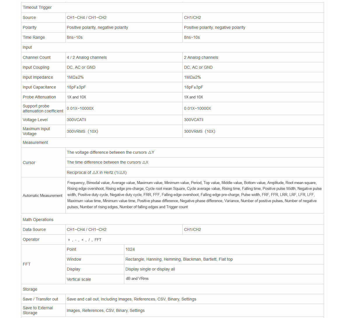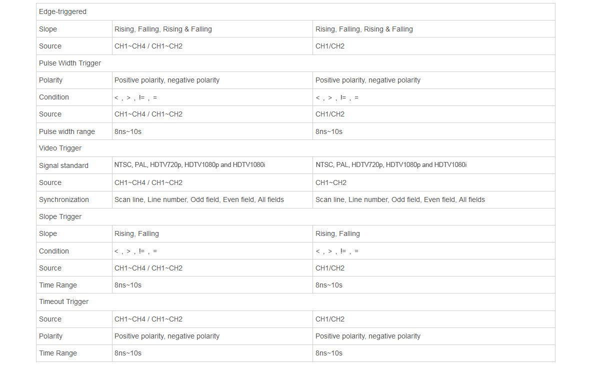 - Four-channel digital storage oscilloscope: 1GS/s sampling rate and 8M memory depth. Edge, slope, pulse width, video, timeout and other triggers. Up to 42 measurement functions.