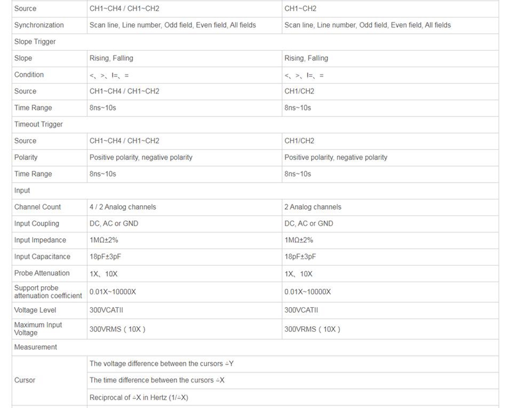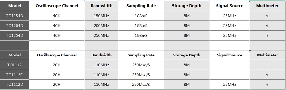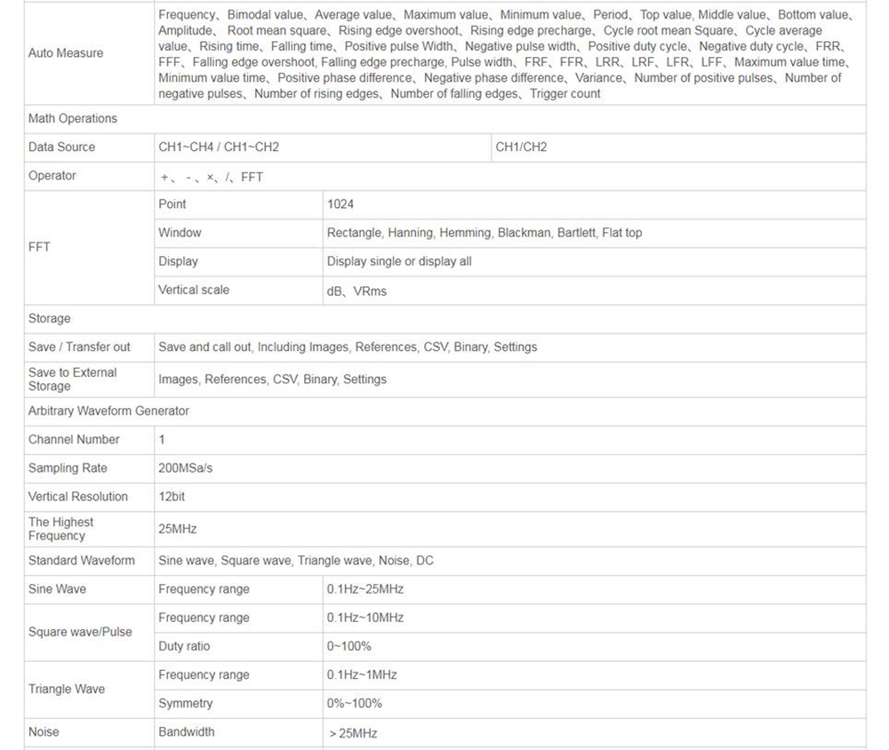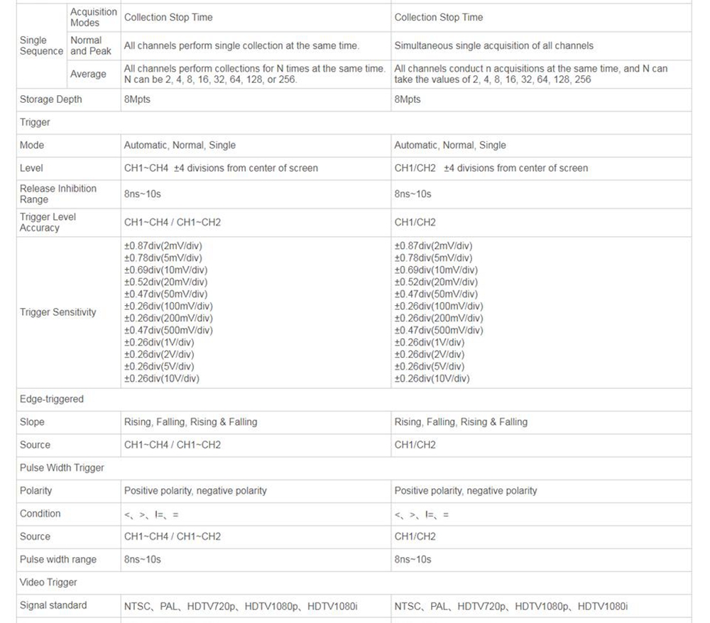 - Standard configuration of 4 or 2-channel oscilloscope, maximum bandwidth of 250MHz, maximum sampling rate of 1GSa/s, 8M large storage.