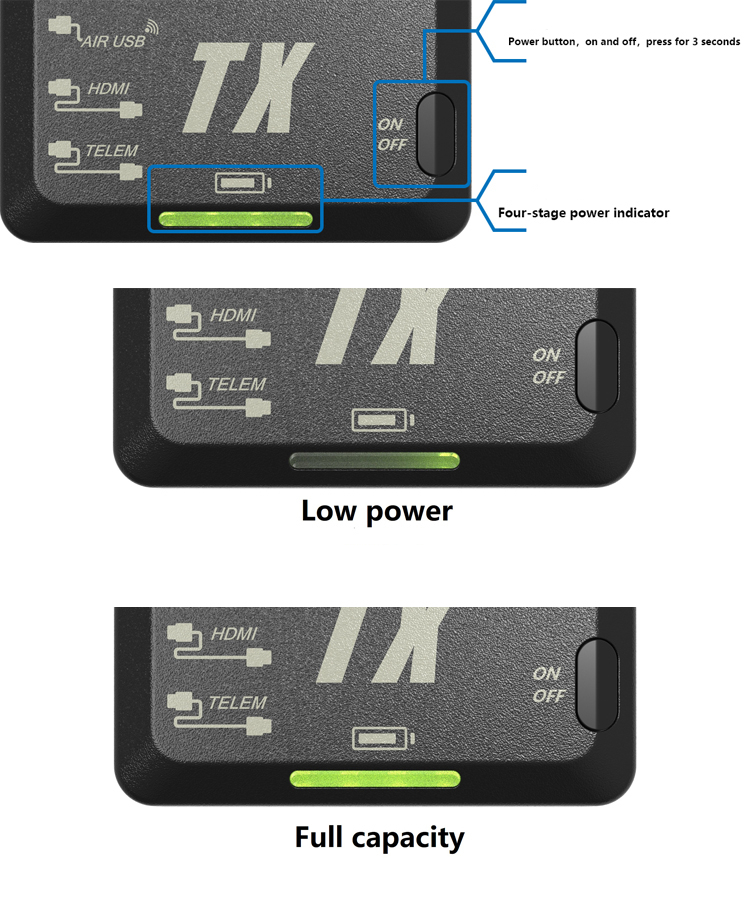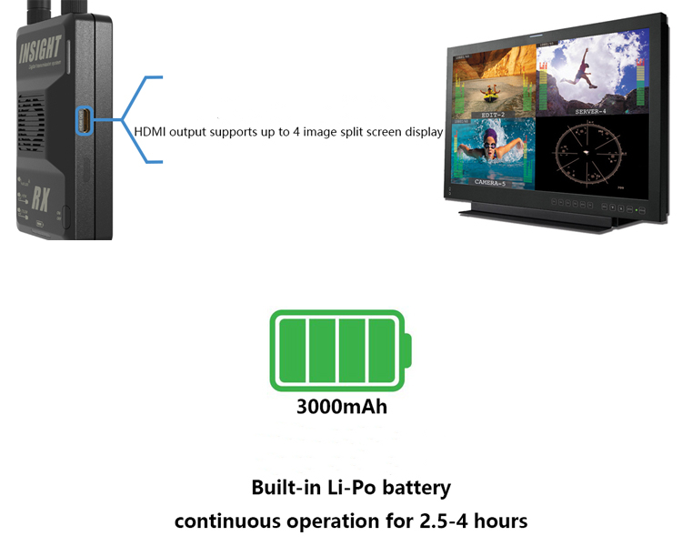 Battery: (receiver/transmitter) built-in 3000mAh Li-Po battery (continuous work for 4 hours/2.5 hours)