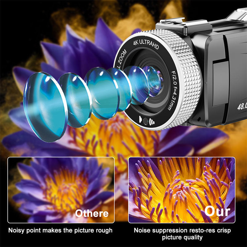 HDV900 Pro 4K/48MP/60FPS 18X Digital Zoom Camcorder F2.0 FOV60 Digital HDV Camera with 3-inch IPS Screen