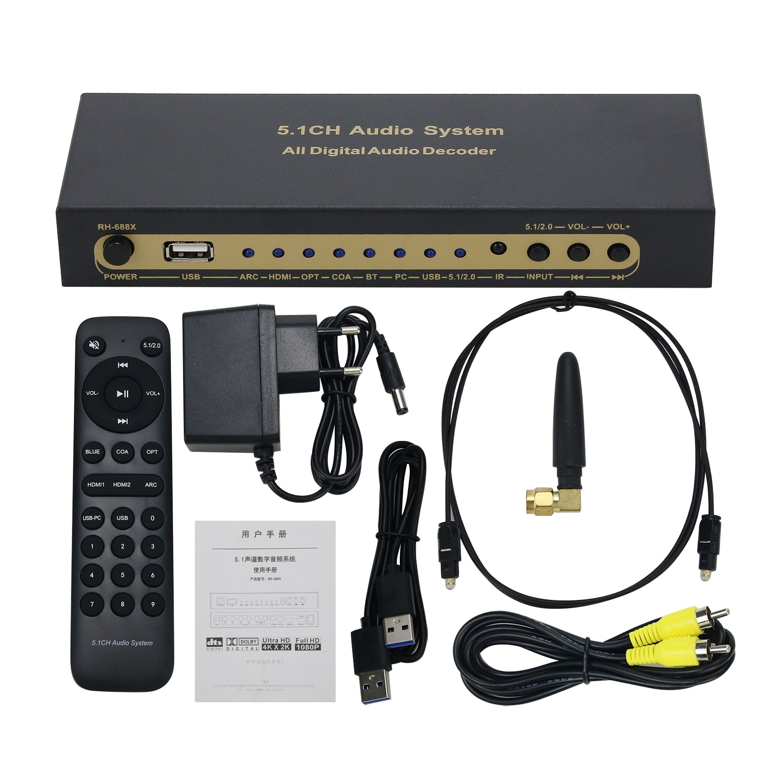HG-688X 5.1CH Audio System All Digital Audio Decoder USB Sound Card HDMI Optical Coaxial For DTS/AC3/WAV