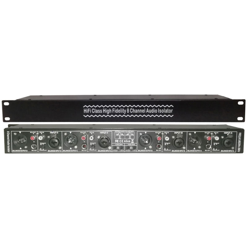 HiFi Class High Fidelity 8 Channel Audio Isolator Passive Direct Box 8 Input 8 Output 1U Cabinet