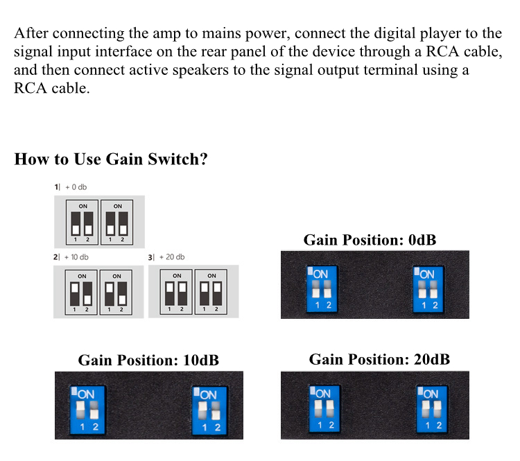 ⑤ 2 RCA Signal Output Interfaces (As a preamplifier which outputs to active speakers)