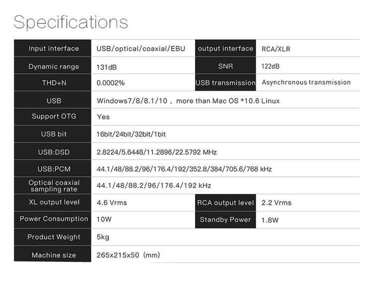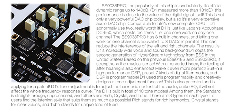 - Using 2 pcs of ES9038PRO DAC chips.