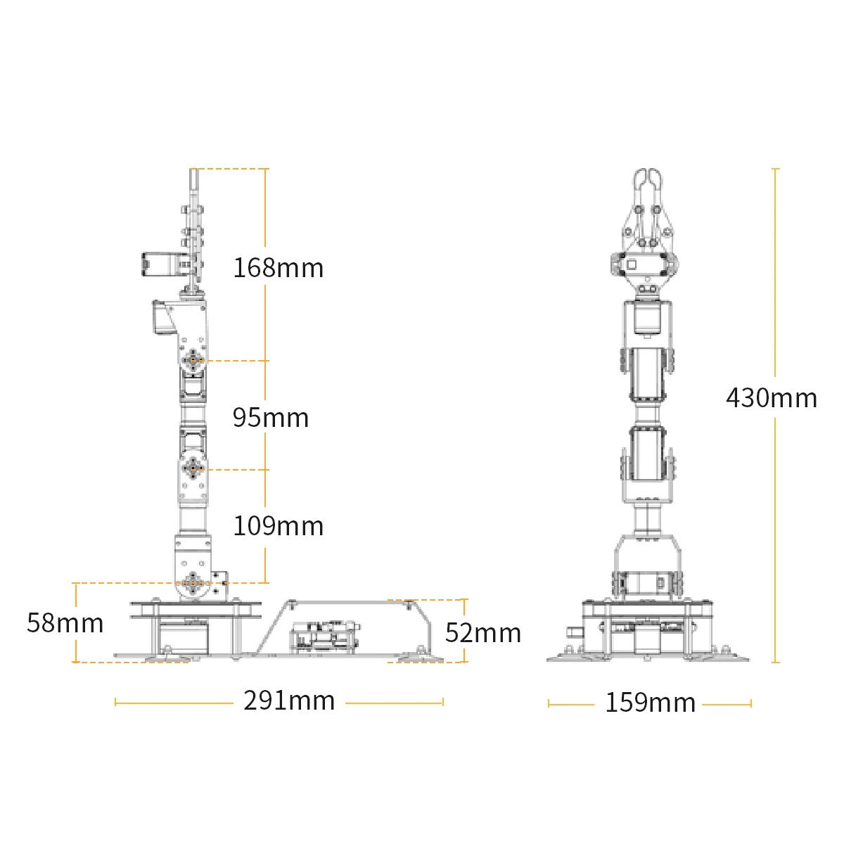 ArmPi uses intelligent serial bus servo with high precision, feedback function and convenient wiring which reduces the friction between wire and brackets. The servo at the base is upgraded to a 25KG torque servo so that ArmPi can grab more than 250g and the movement is more steady