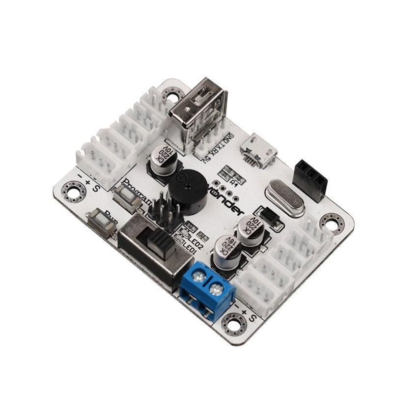 Hiwonder intelligent serial bus servo controller can be used in serial servo control and it can combine with a wireless controller for PS2 to realize servo remote control. It supports manual programming, online debugging and TTL serial port communication.
