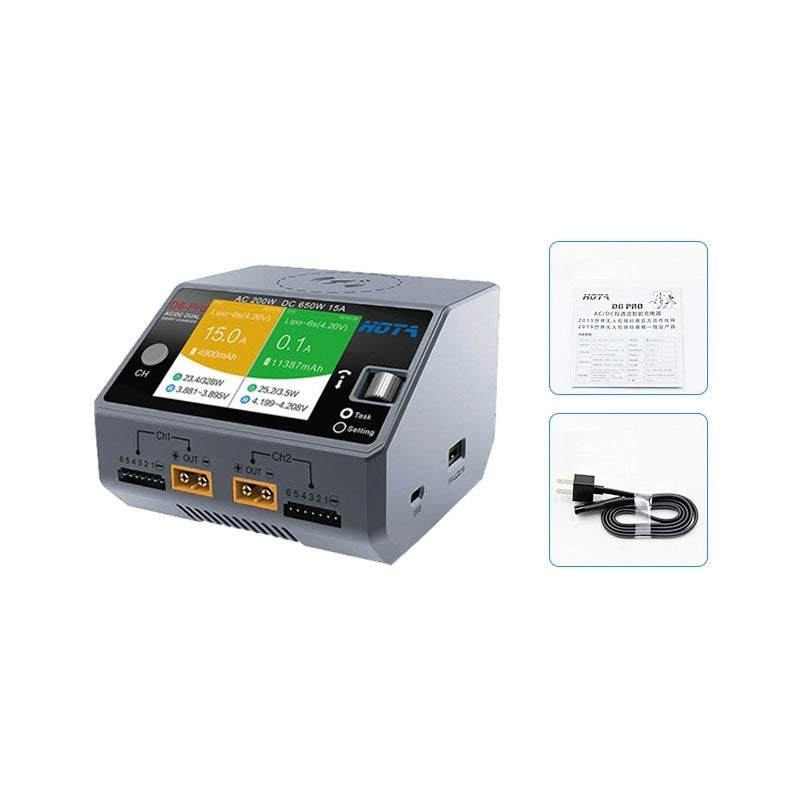 HOTA D6 PRO 650W 15A 2CH AC/DC Smart Charger Lithium Battery Charger Phone Wireless Charger Gray