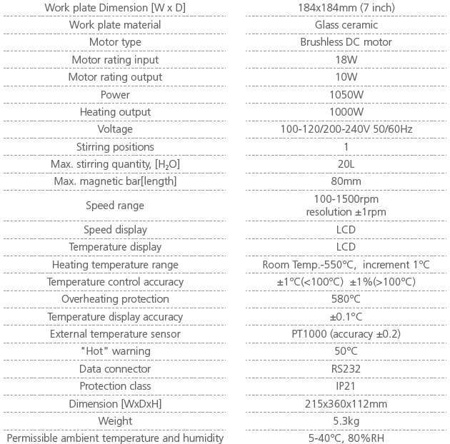 - Glass ceramic work plate provides excellent chemical resistant performance and most efficient heat transfer