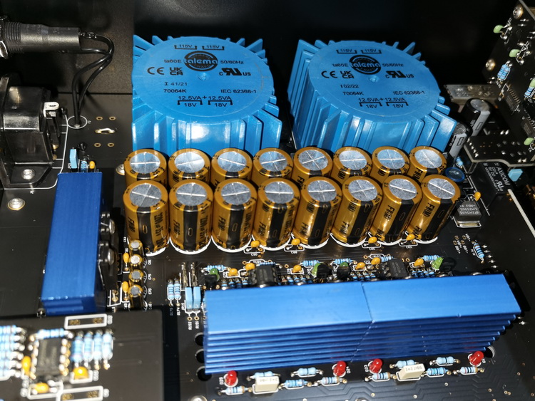 - Two 25VA sealed transformers for TALEMA, and audio capacitors for Nichicon with a total capacity exceeding 35000μF.
