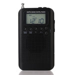 HRD-104 Portable AM FM Radio Mini Radio Two Band Digital Clock Radio Timing With Loudspeaker Black