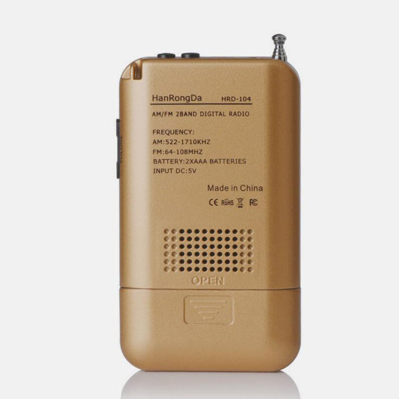 HRD-104 Portable AM FM Radio Mini Radio Two Band Digital Clock Radio Timing With Loudspeaker Golden