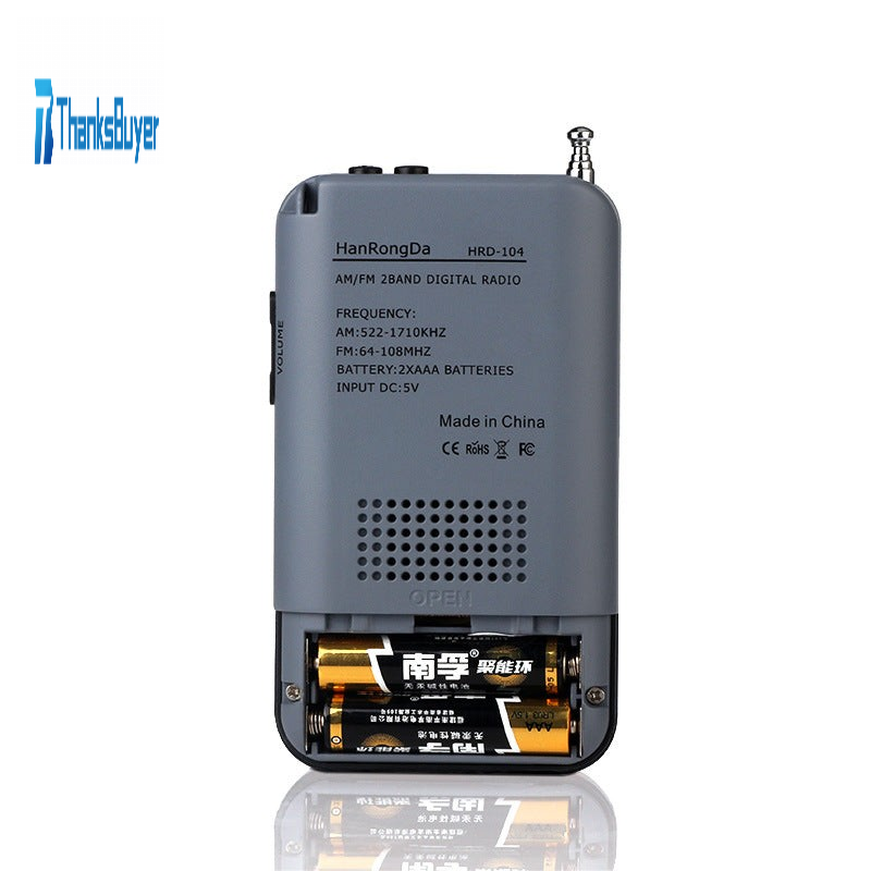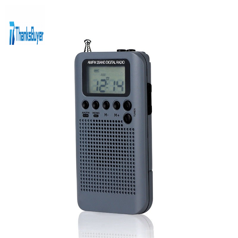 HRD-104 Portable AM FM Radio Mini Radio Two Band Digital Clock Radio Timing With Loudspeaker Gray