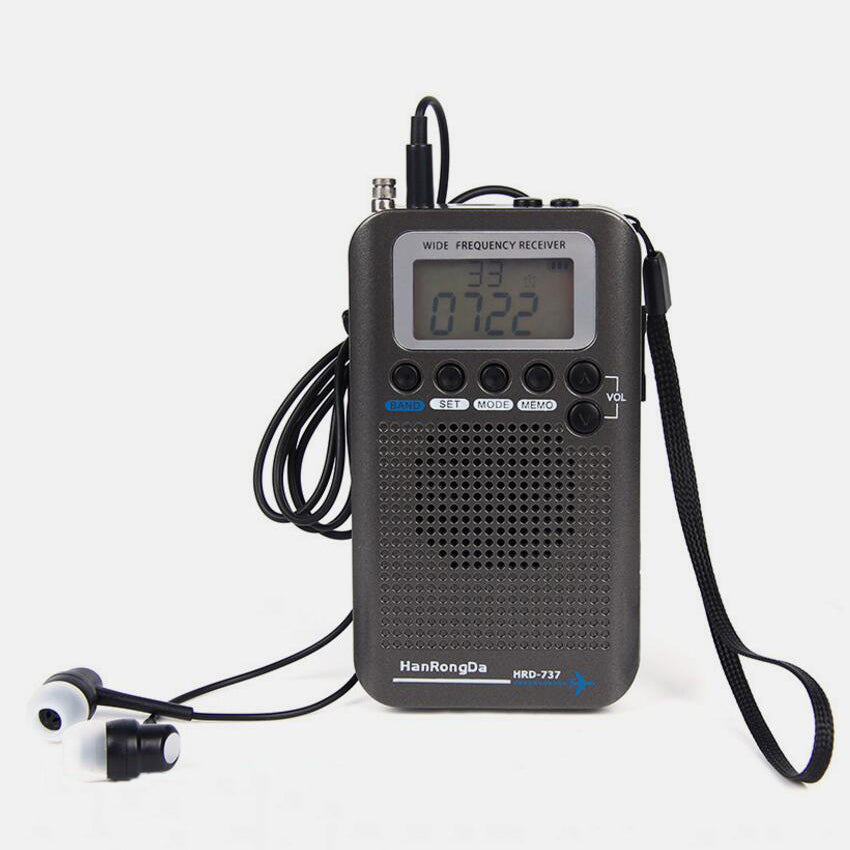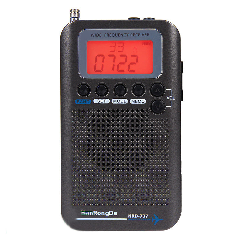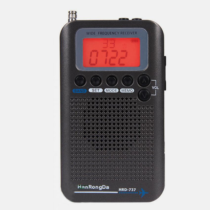 HRD-737 Air Band Radio Receiver Full Band Radio Alarm Clock VHF Multiband Radio LCD Backlight Black