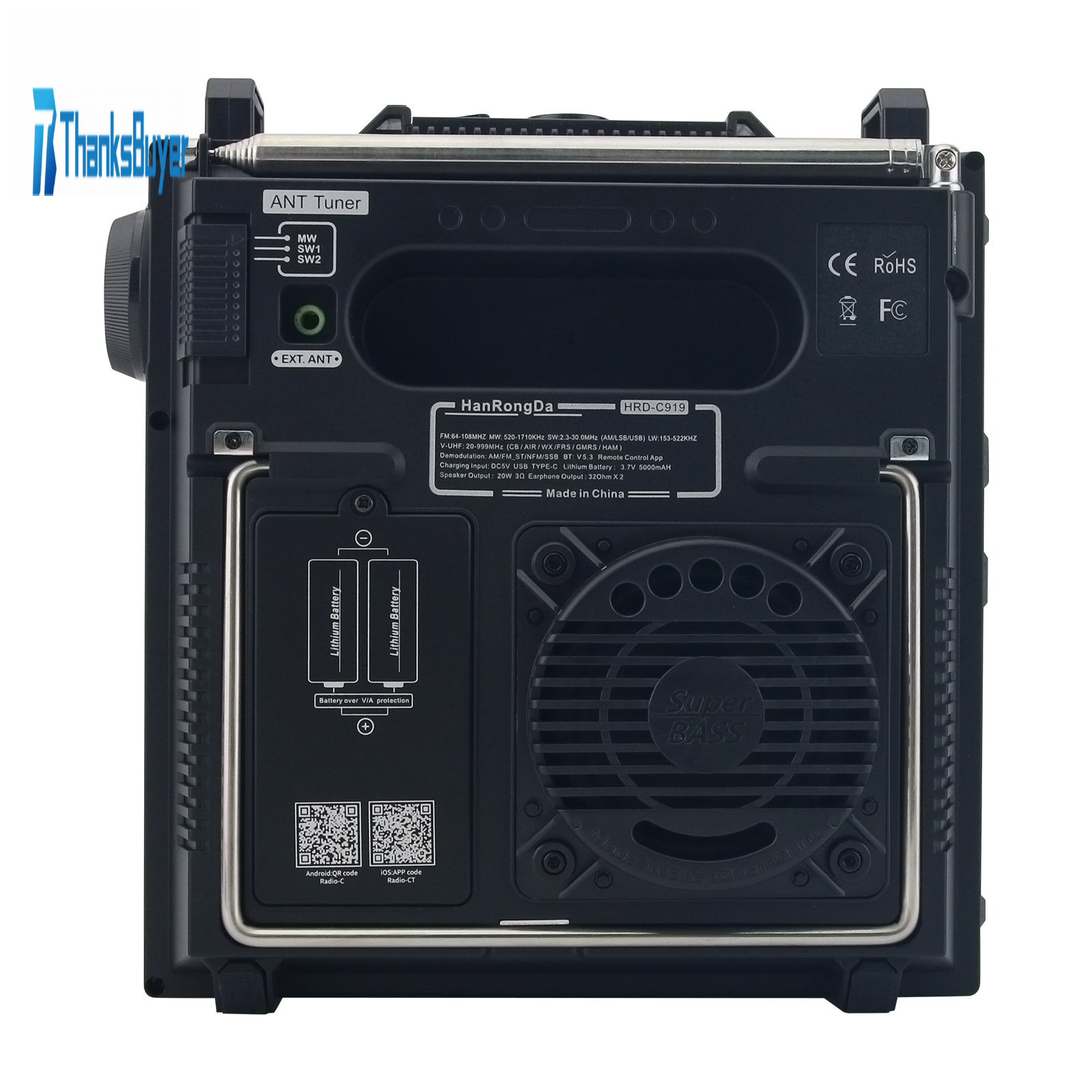 - SNR: MW SNR ≥18dB; FM SNR ≥40dB; SW SNR ≥ 40dB