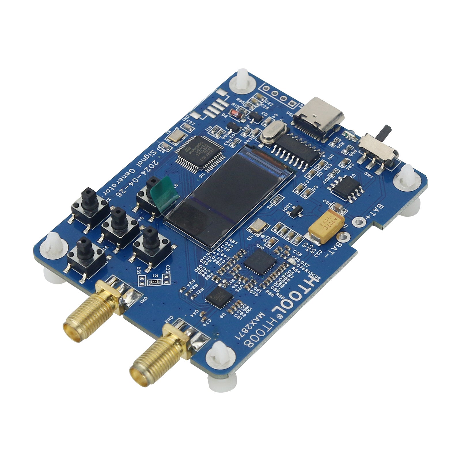 Adopting MAX2871, 90 x 160 (0.96 inch) OLED color display screen, CH340G USB to serial port chip. It can achieve the following functions: