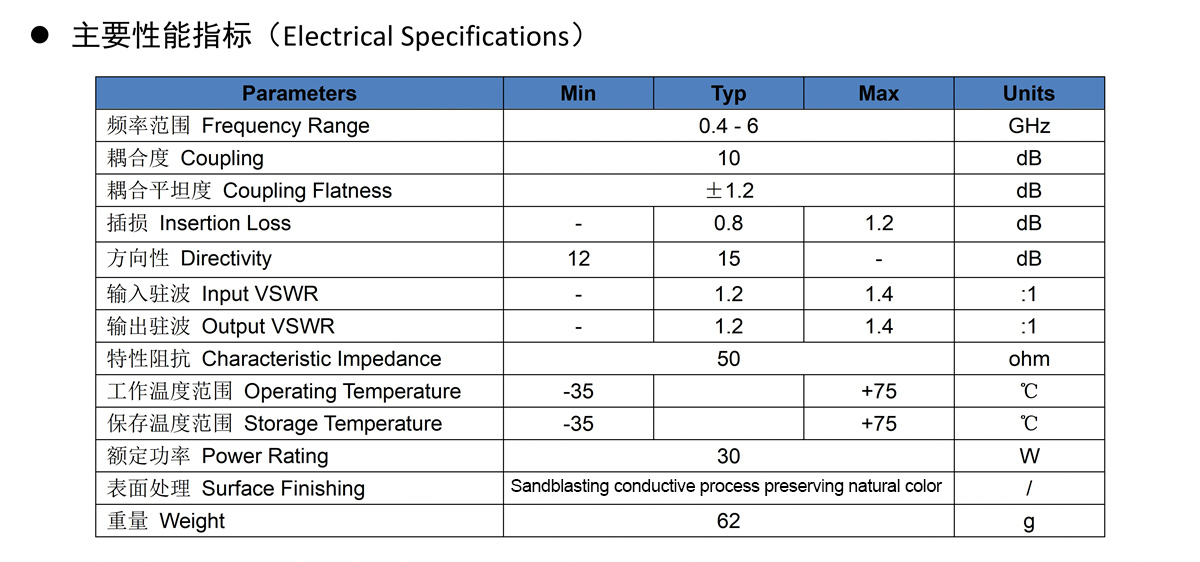 HXDC-004060-10S 0.4-6GHz RF Microwave 30W 10dB Directional Coupler with SMA Female Connector