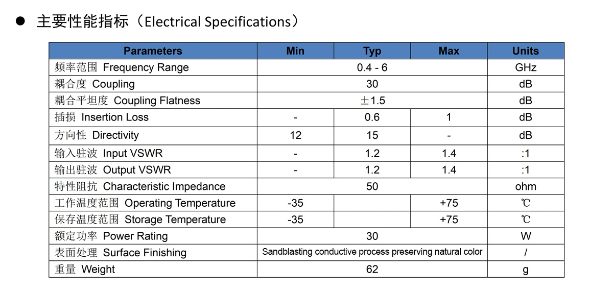 HXDC-004060-30S 0.4-6GHz 30dB 30W RF Microwave Directional Coupler with SMA Female Connector