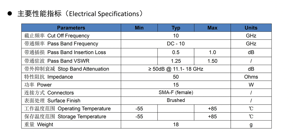 - Pass Band Frequency: DC-10GHz