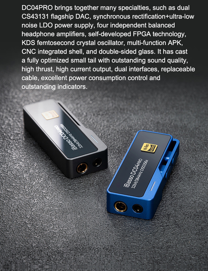 iBasso Blue DC04PRO Decoding Headphone Amplifier HiFi Decoder Dual CS43131 Flagship DAC with Lightning Cable