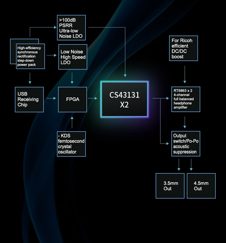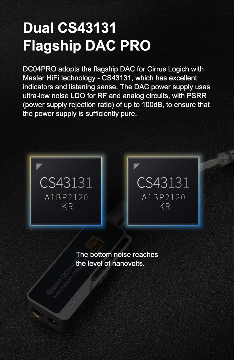 - DAC chip: CS43131 x 2