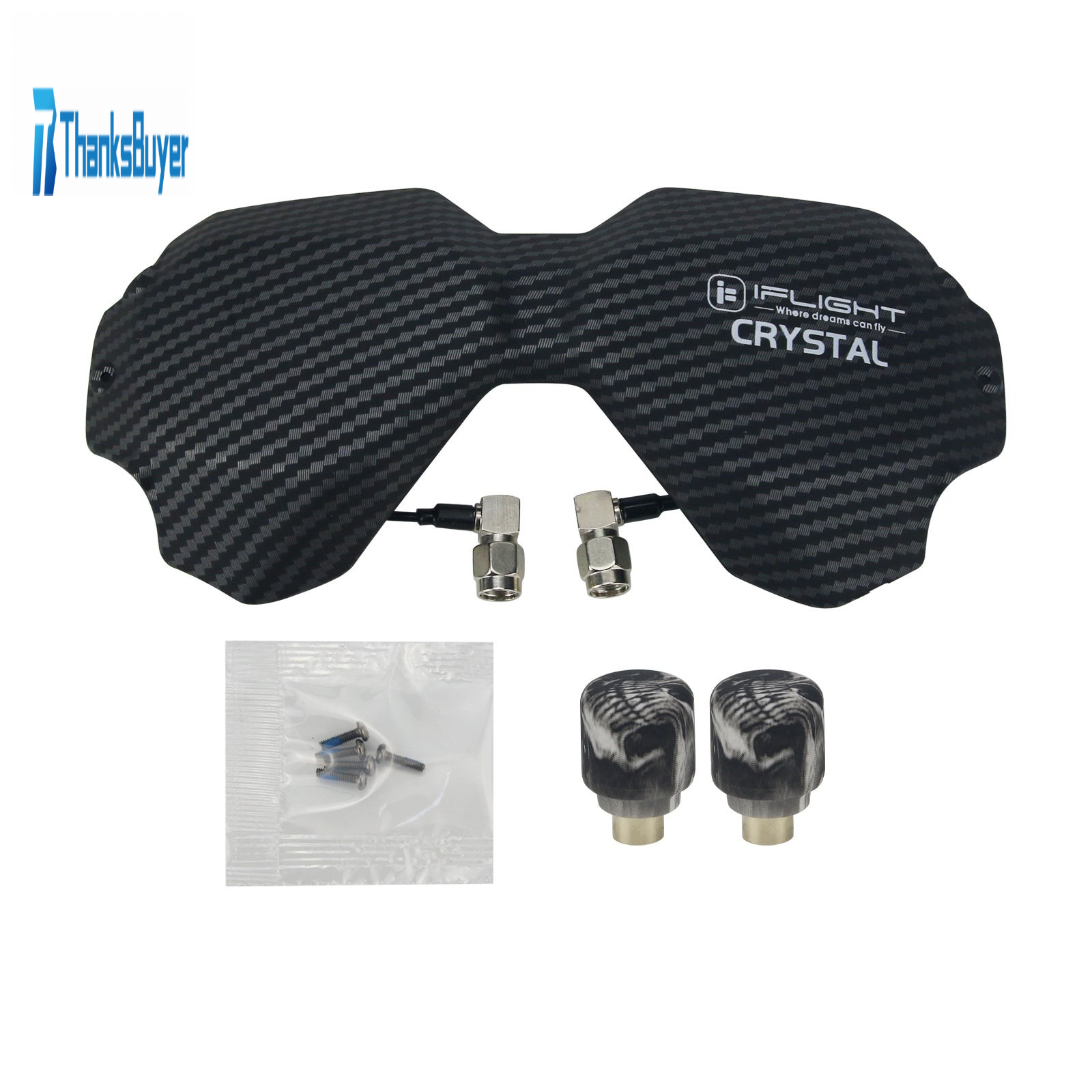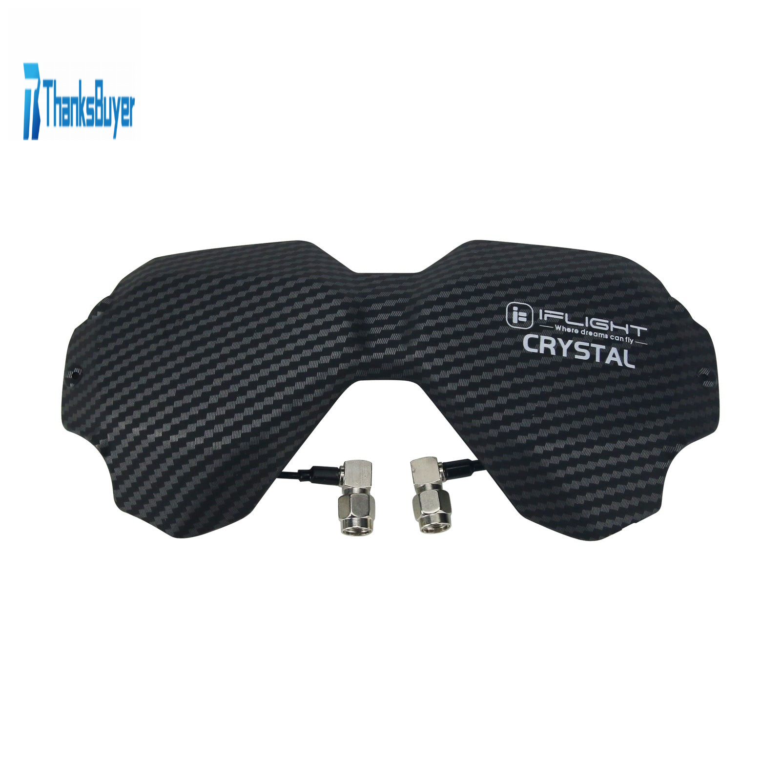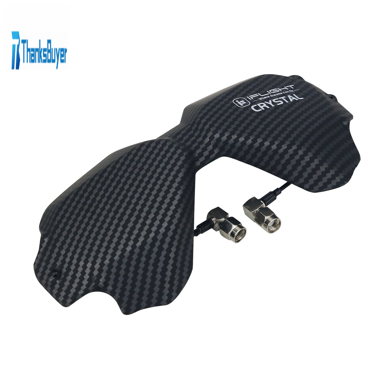 Let's welcome our new iFlight Crystal HD 5.8GHz Directional Antenna! Specially designed for the DJI Digital FPV Goggles to replace the stock front plate with our iFlight engineered Antenna Array. NO, this is not another patch antenna! Two carefully designed and highly sensitive LHCP high gain directional antennas give you a better reception at long range as well as better penetration through trees, bandos or other difficult terrains. Low profile design to decrease your pack size to a minimum, and high quality RG178 cables for best durability. We were able to achieve a super wide antenna beam width through an offset angle of 30 degrees between the two antennas. Horizontal beam of 105 degrees and vertical beam of 75 degrees at 9dBi gain, dropping of slowly the further you get to the side! Low loss with a 93% antenna efficiency and a axial ratio of ≤1.6 through the whole band. If that's not enough, we also gave you the option to either mount your antennas at the bottom or top pair of the Goggle RP-SMA connectors. Multiple designs available, get them as long they last!