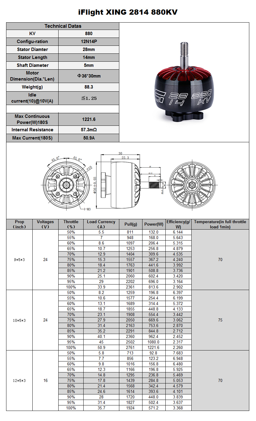 iFlight XING 2814 880KV Brushless Motor 3-6S FPV Brushless Motor for Long Range FPV Racing Drone