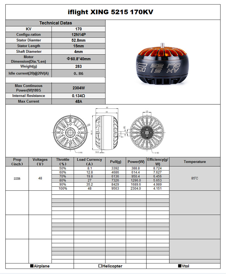 - 1 x iFlight XING 5215 170KV Brushless Motor