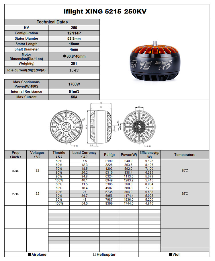 - 1 x iFlight XING 5215 250KV Brushless Motor