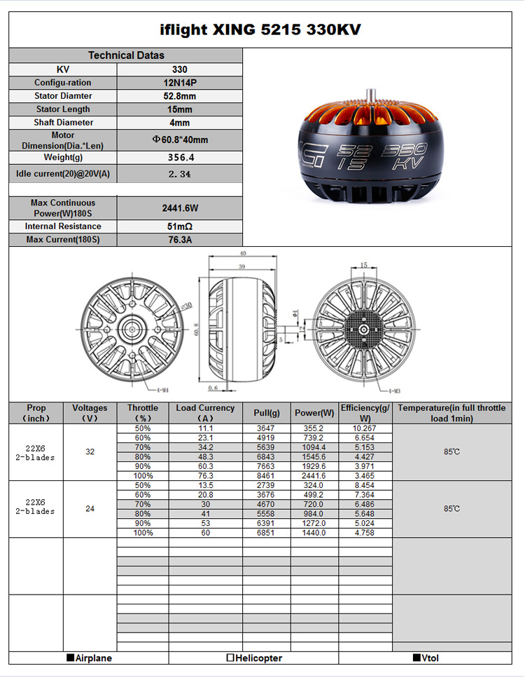 - 1 x iFlight XING 5215 330KV Brushless Motor