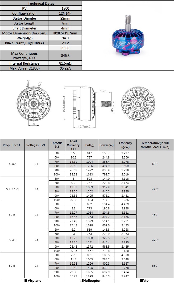 Motor cable length 160mm can meet different requirements whether connecting single or 4 in 1 ESC; Each motor has been dynamic balanced, all of them have passed the highest standard iFlight manufacturing and assembling procedure.