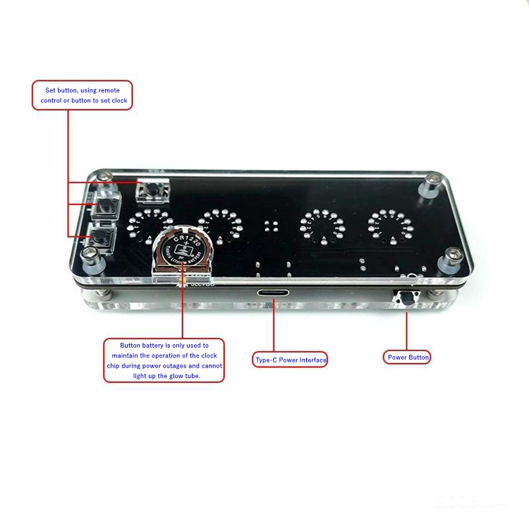 - This product is only a base, please purchase 4 IN8-2 nixie tubes by yourself, trim the pins and plug them in.