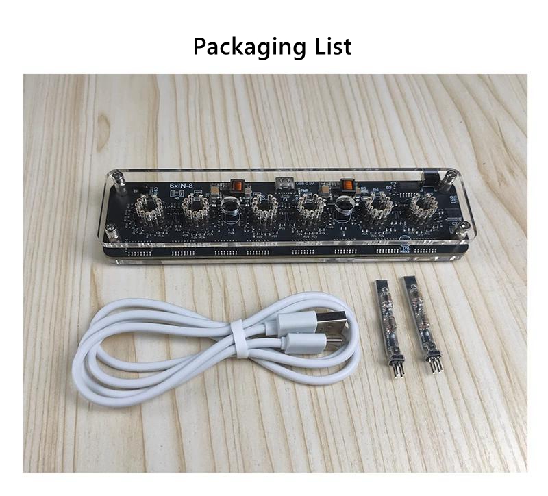 - The nixie tube is not included. The supported nixie tube model is IN-8 (NH-8), which has coarse pins. Simply plug it into the socket. It does not support IN8-2 with slender pins.