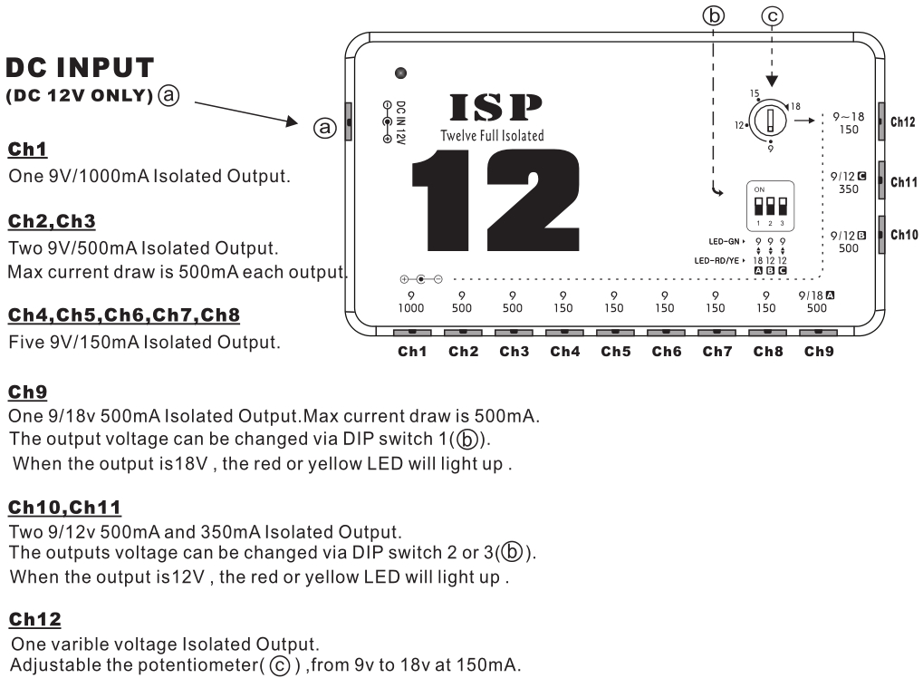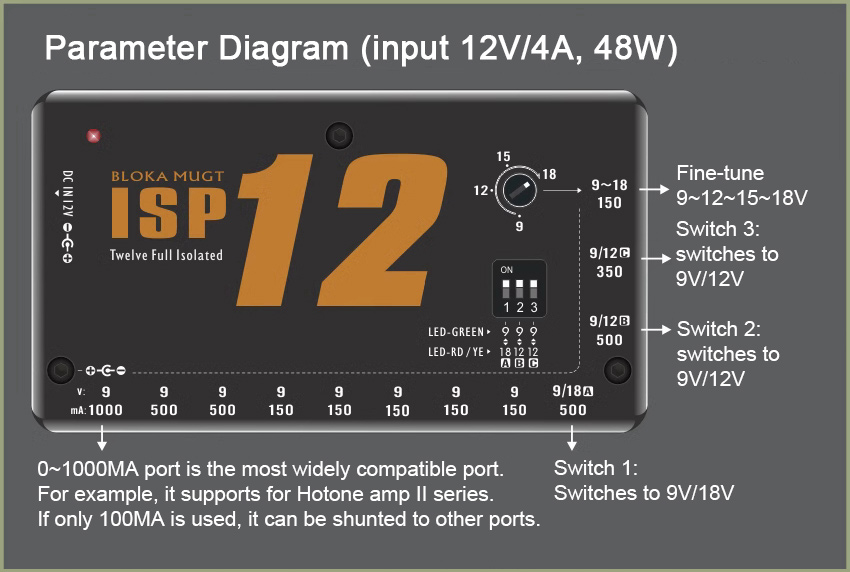 ISP12 12-Channel Fully Isolated Guitar Pedal Power Supply Isolated Power Supply for Stomp Box