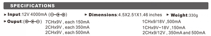 2: For example, a multi-channel power supply is marked 9 300MA, which means that the power supply has a fixed output voltage of 9V, and it can provide any current in the range of 0~300MA. Plug in a 50MA effect pedal and it consumes 50MA. Plug in a 100MA effect pedal and it consumes 100MA. Plug in a 300MA effect pedal and it consumes 300MA. In other words, the power consumption is determined by the effect pedal.