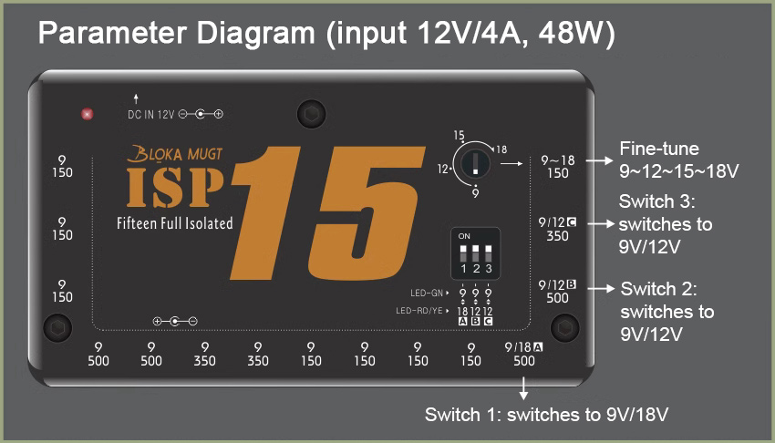 ISP15 15-Channel Fully Isolated Guitar Pedal Power Supply Isolated Power Supply for Stomp Box